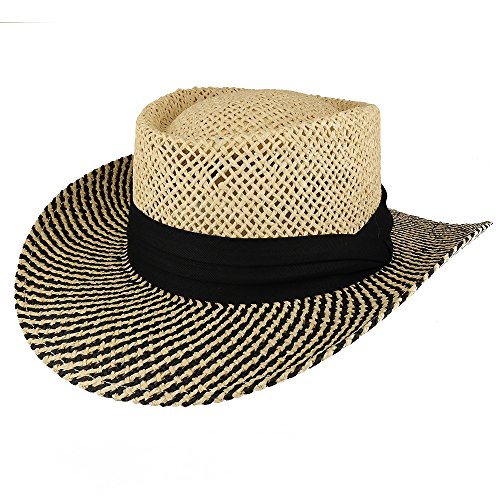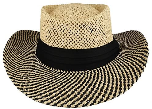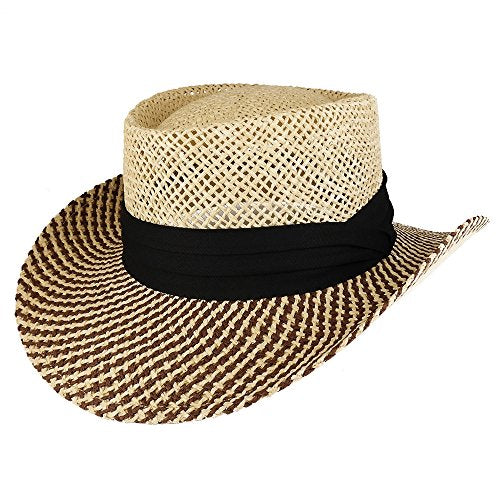 Trendy Apparel Shop UV 50+ Men's Straw Lightweight Wide Brim Gambler Hat with Hat Band