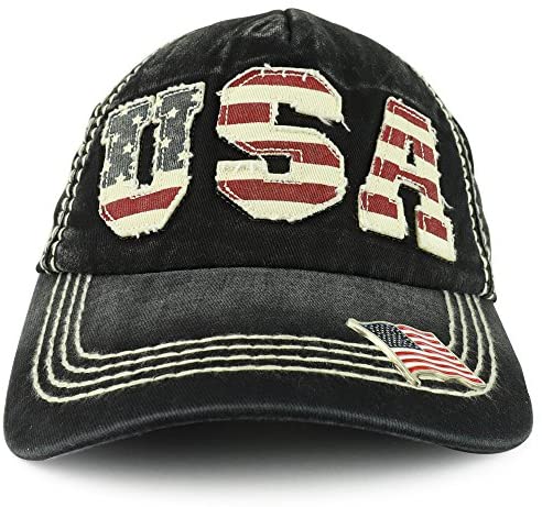 Our Vintage Frayed USA Patch 5-Panel Washed Ball Cap with Metallic USA Flag Pin is a great look for any occasion. Made of 100% Cotton. Adjustable Strapback. Vintage look. Ensures a comfortable fit. One size fits most.