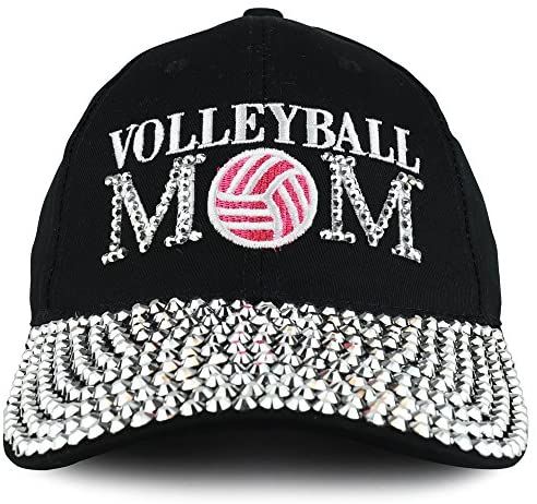 Our Volleyball MOM Embroidered and Stud Jeweled Bill Unstructured Baseball Cap is a great hat for fashionsistas. This structured baseball cap features high quality jeweled sequins and studs. Made of 100% Cotton. Stiff and pre-curved bill. Mid profile. Structured crown. 6 panels. 6 small ventilation eyelets. Fitted with an inner sweatband. Finished with an adjustable hook and loop closure. One size fits most.