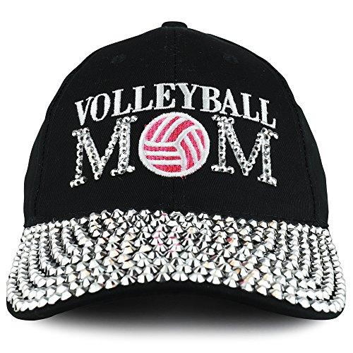 Trendy Apparel Shop Volleyball MOM Embroidered and Stud Jeweled Bill Unstructured Baseball Cap - Black