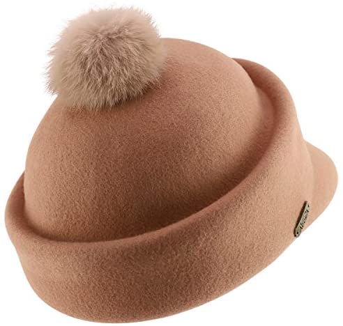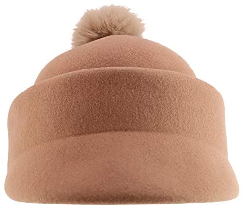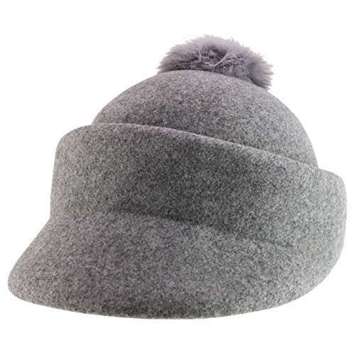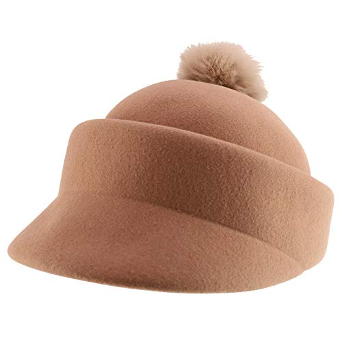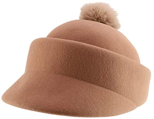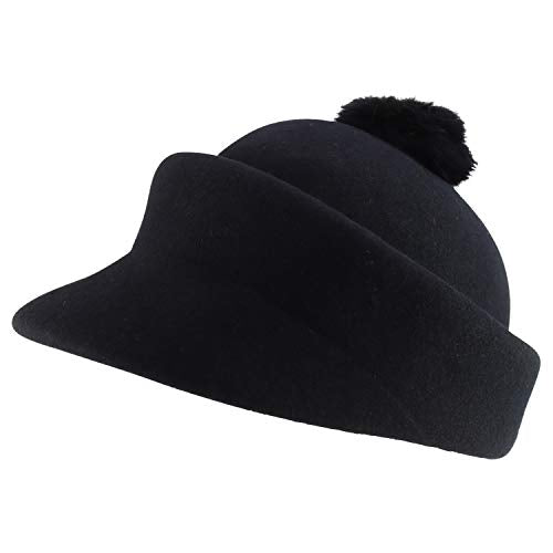 Trendy Apparel Shop Women's Wool Felt Cloche Brim Cap with Fur Pom Pom Accent. 100% Wool. Chic and stylish wool felt brim cap for ladies this Fall and Winter. A fur pom pom is accented on top of hat. Round and stiff crown, stiff and slightly pre-curved bill measures around 2.5 inches long. Perfect ladies hat for church, wedding, party, date, photoshoot and other outdoor event in Fall and Winter. One size fits most with an inner adjustable elastic tie string, fitting up to XL.