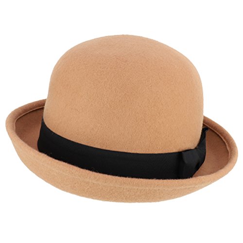 Trendy Apparel Shop Wool Felt Round Bowler Hat with Grosgrain Band