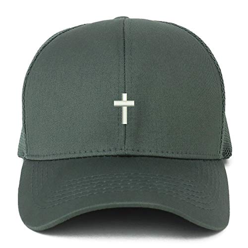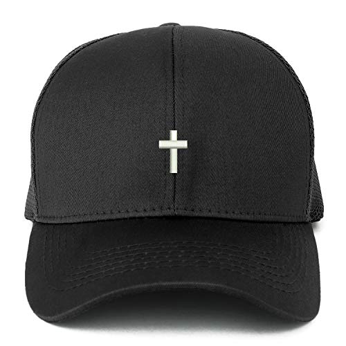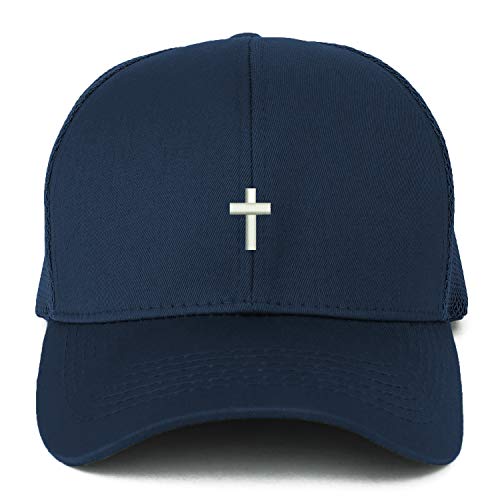 Trendy Apparel Shop XXL Cross Embroidered Structured Trucker Mesh Cap