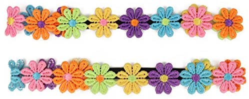 Our Trendy Apparel Shop Youth Girl's Rainbow Cotton Flower Stretchy Headband 2 Pack is a great hair accessory set for your little girls. This set includes 2 multi colored flower headband. Made of 100% Cotton. Mini flowers of rainbow color are featured on this headband. Black band is stretchable. One size fits most girls.